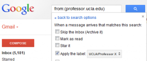 And then, once you get the email addresses for each of your professors, you can create filters for each of their email addresses and automatically add them with a new label (nested under your school folder).