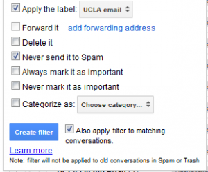 Now you have a variety of options on how to handle email from your school. You can star it automatically, make sure it will never send to spam, always mark it as important, categorize it, forward it, etc.