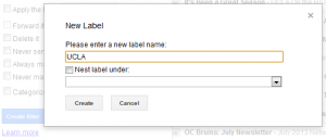 Once you select new label, simply create a name for this gmail folder with your school as the folder name and click the create button.